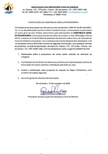 Primeira Convocação: 14:00 (quatorze) horas, com a presença da maioria absoluta dos associados.